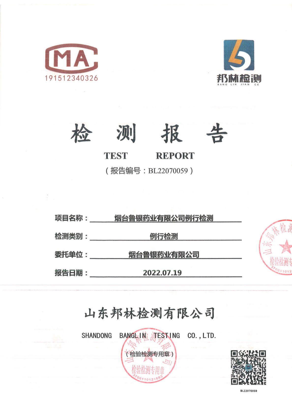 魯銀藥業(yè)例行檢測(cè)報(bào)告2022.07.19